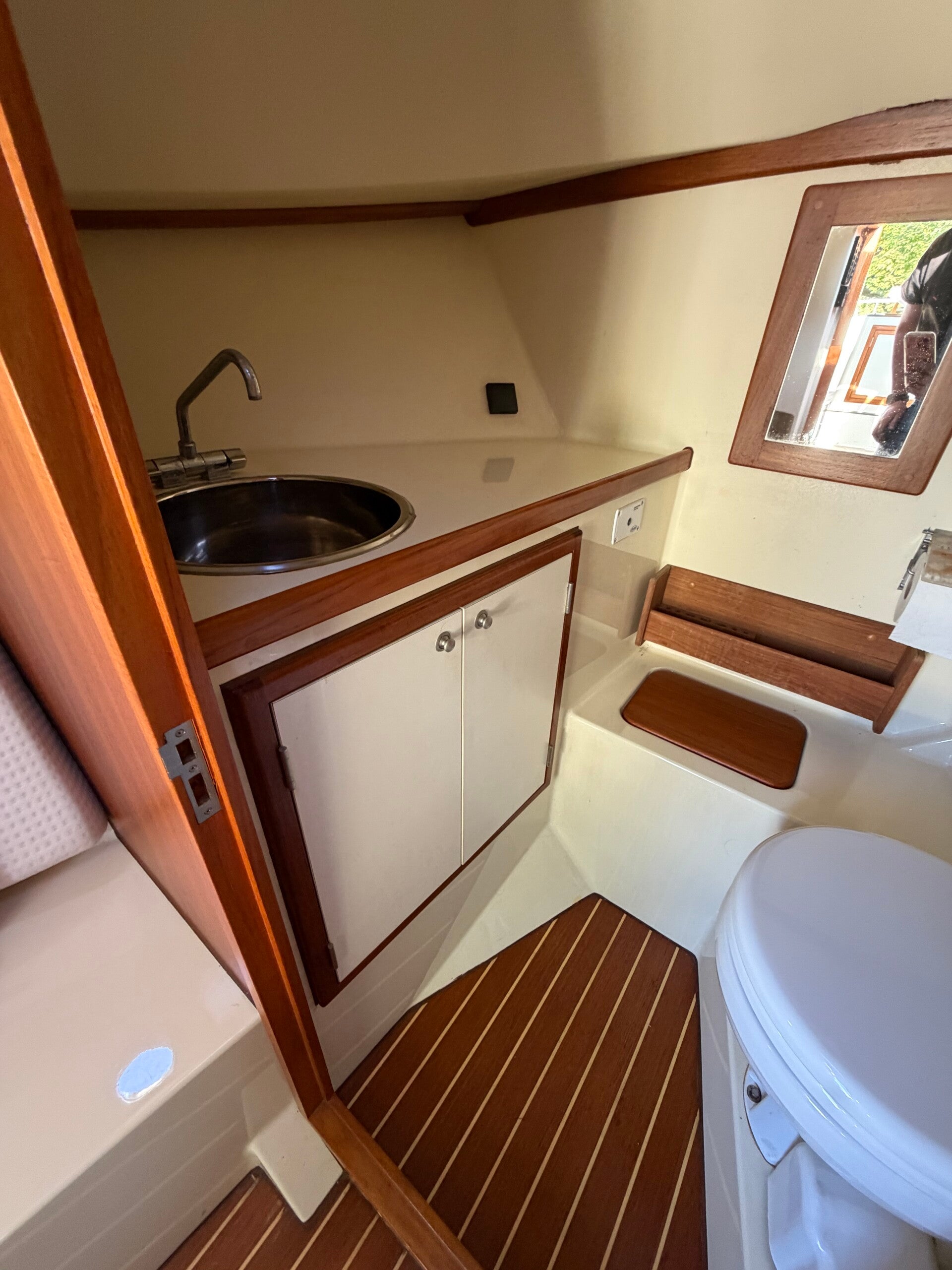 • Teak klaptafel tegen stuurstand